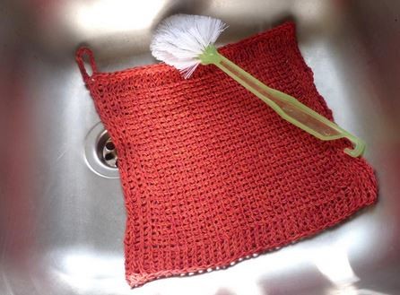 Foi por tropeçar numa publicação que descobri que anda muita gente a substituir os esfregões da louça por escovas + panos em crochet. E para mim, faz todo o sentido fazer a transição.